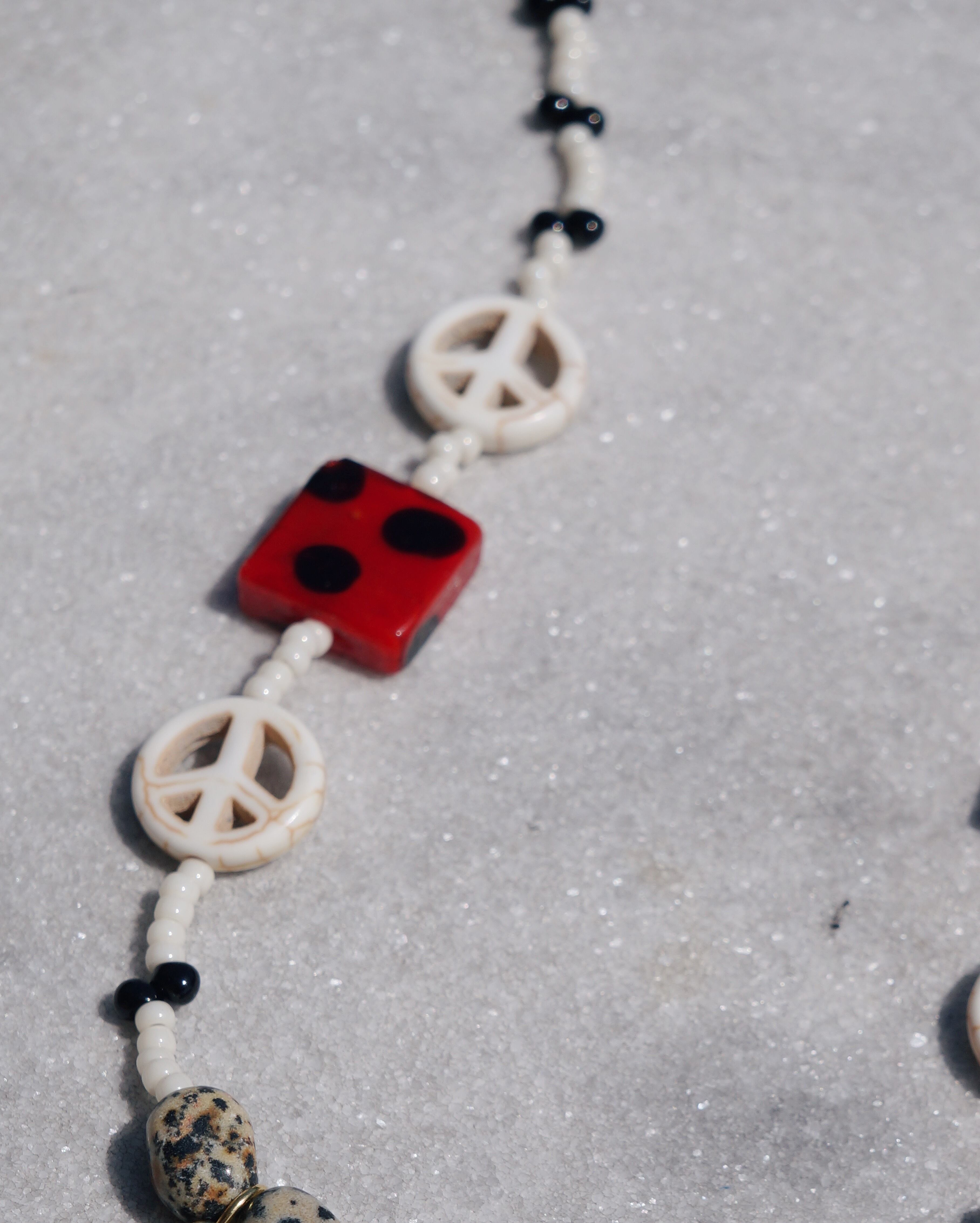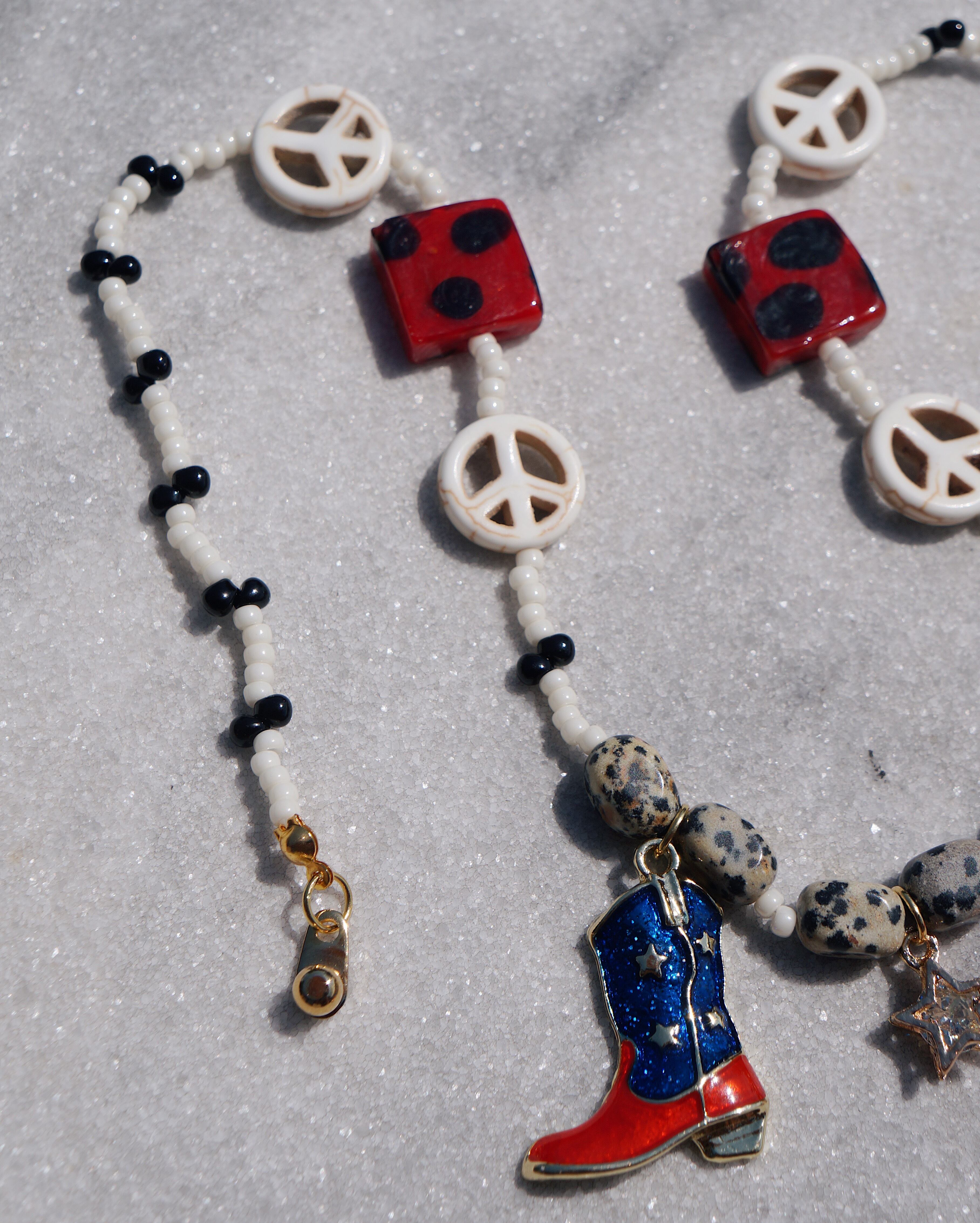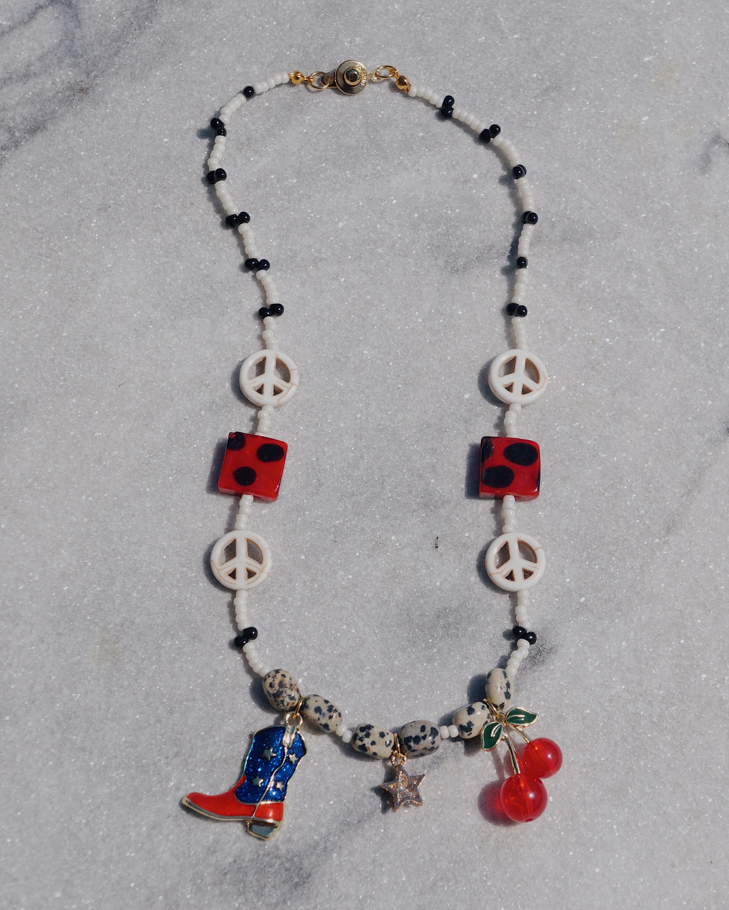 ポップでキュートなJBCGらしいネックレスです。3個のチャームが印象的でコーディネートを一気に華やかにしてくれるような一点です。