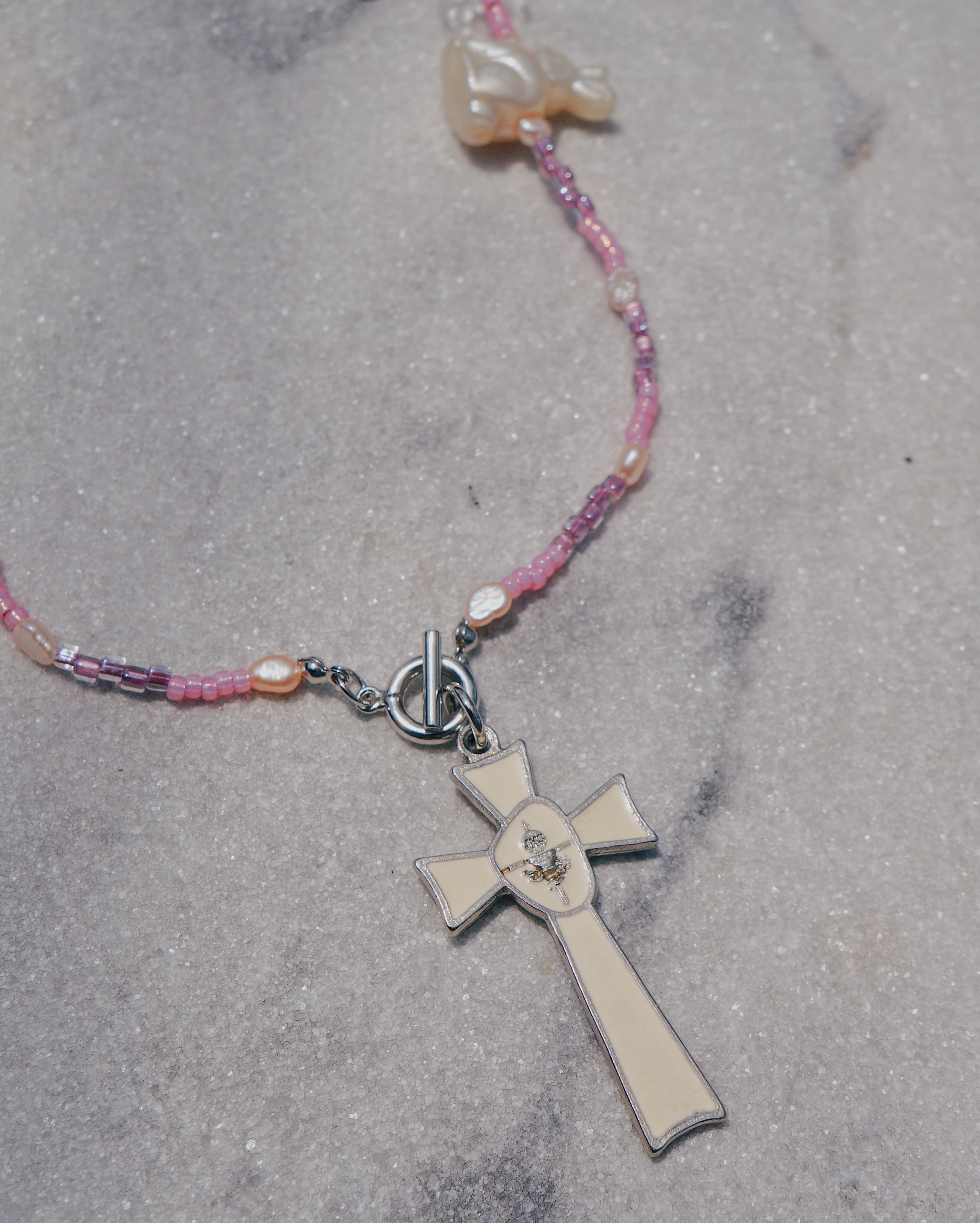 ※パールは希少なケシパール、また十字架のチャームはイタリア製のものを使っています。