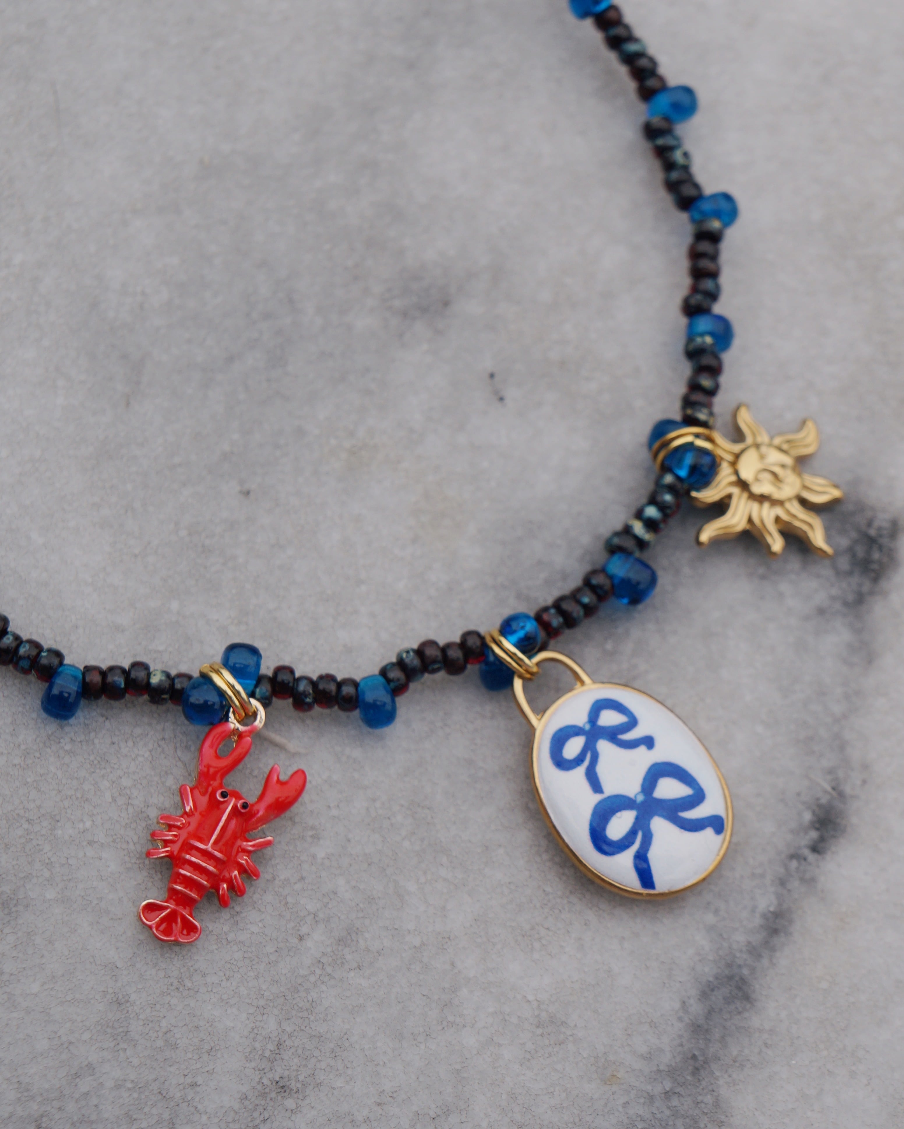 遊び心がたっぷりな子供心を思い出すようなネックレスをデザインしました。ユニークでありながら色味はまとまっているため合わせ方によってはシックな雰囲気も演出できるような素敵なネックレスです。ネックレスだけでも映えるのはもちろんですが、25245のピアスとセットではめると一気におしゃれ感が増し、おすすめです。