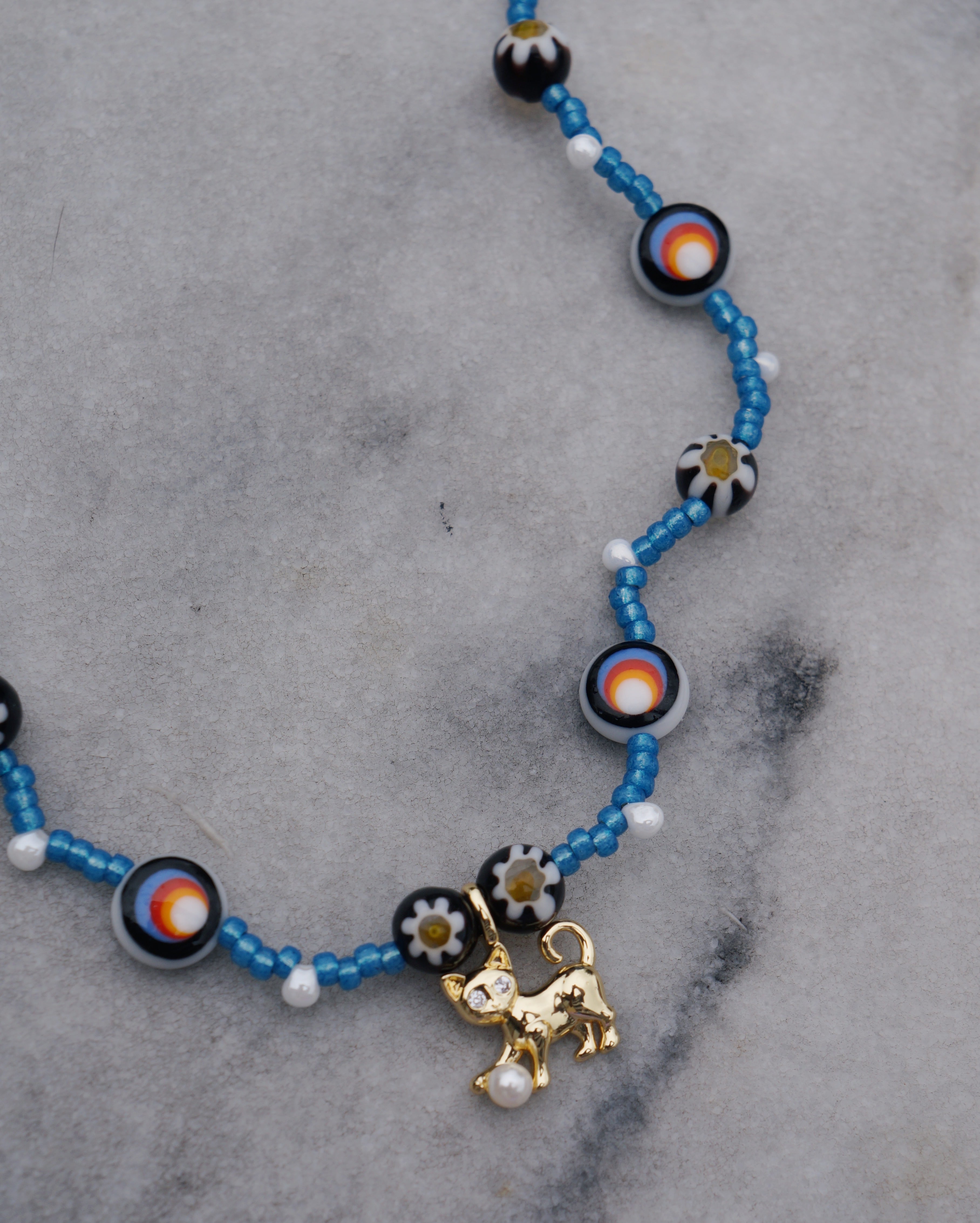 茶目っ気たっぷりな遊び心を沢山入れたネックレスです。猫ちゃんのチャームが更にキュンとする可愛いらしさを出し、猫ちゃん好きさんにおすすめの一点です。
