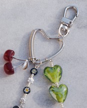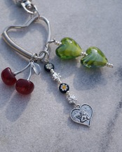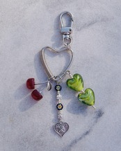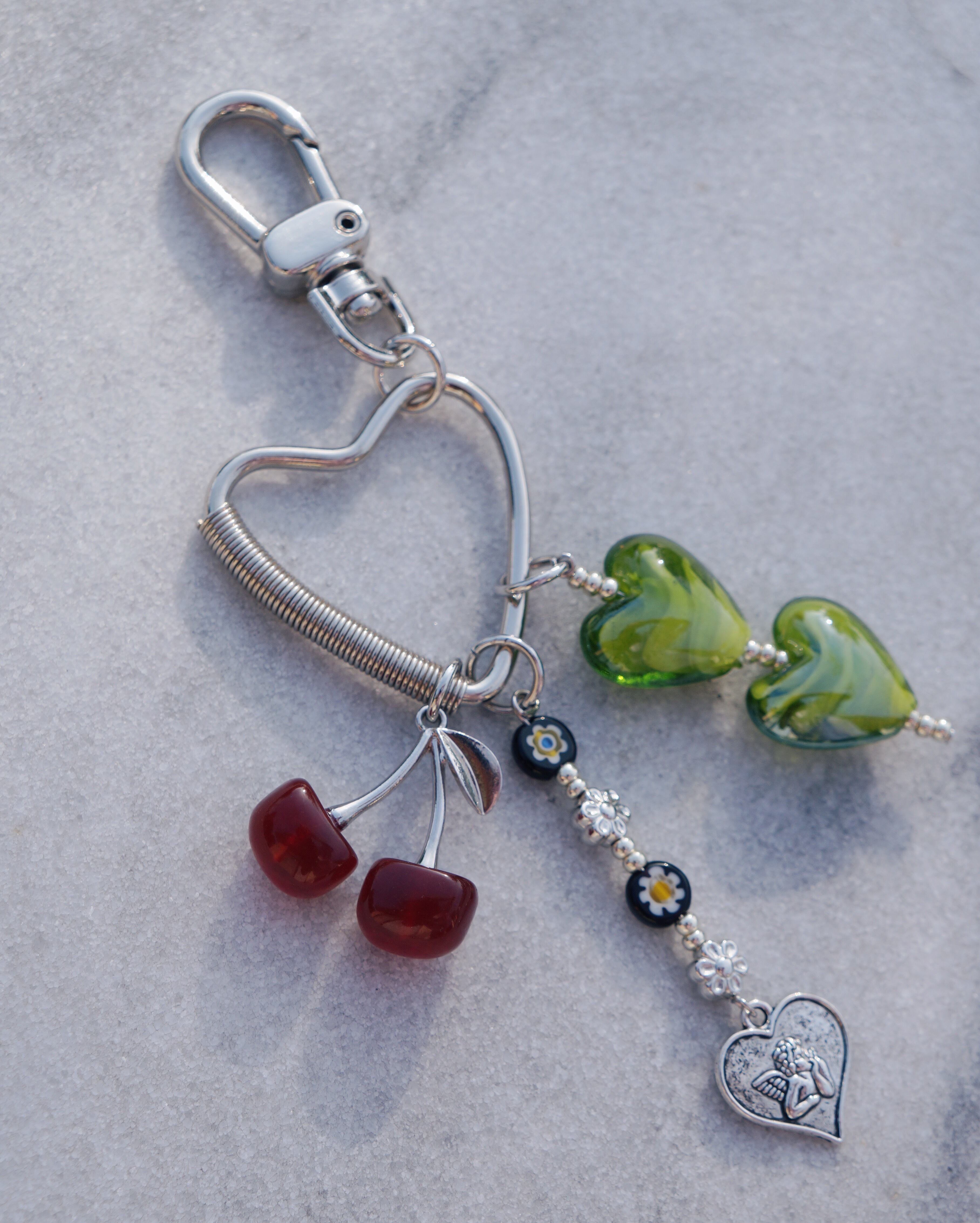 可愛らしさの中の少し毒々しい雰囲気も入れたJBCGらしいデザインのキーフォルダーです。チェリーやガラスビーズのハート、そして天使のモチーフのパーツなどじゃらじゃらと存在感があります。バッグやパンツのベルトループにつけたり、鍵などをつけるキーチェーンとして使ったりと様々なシーンで大活躍してくれるアイテムです。