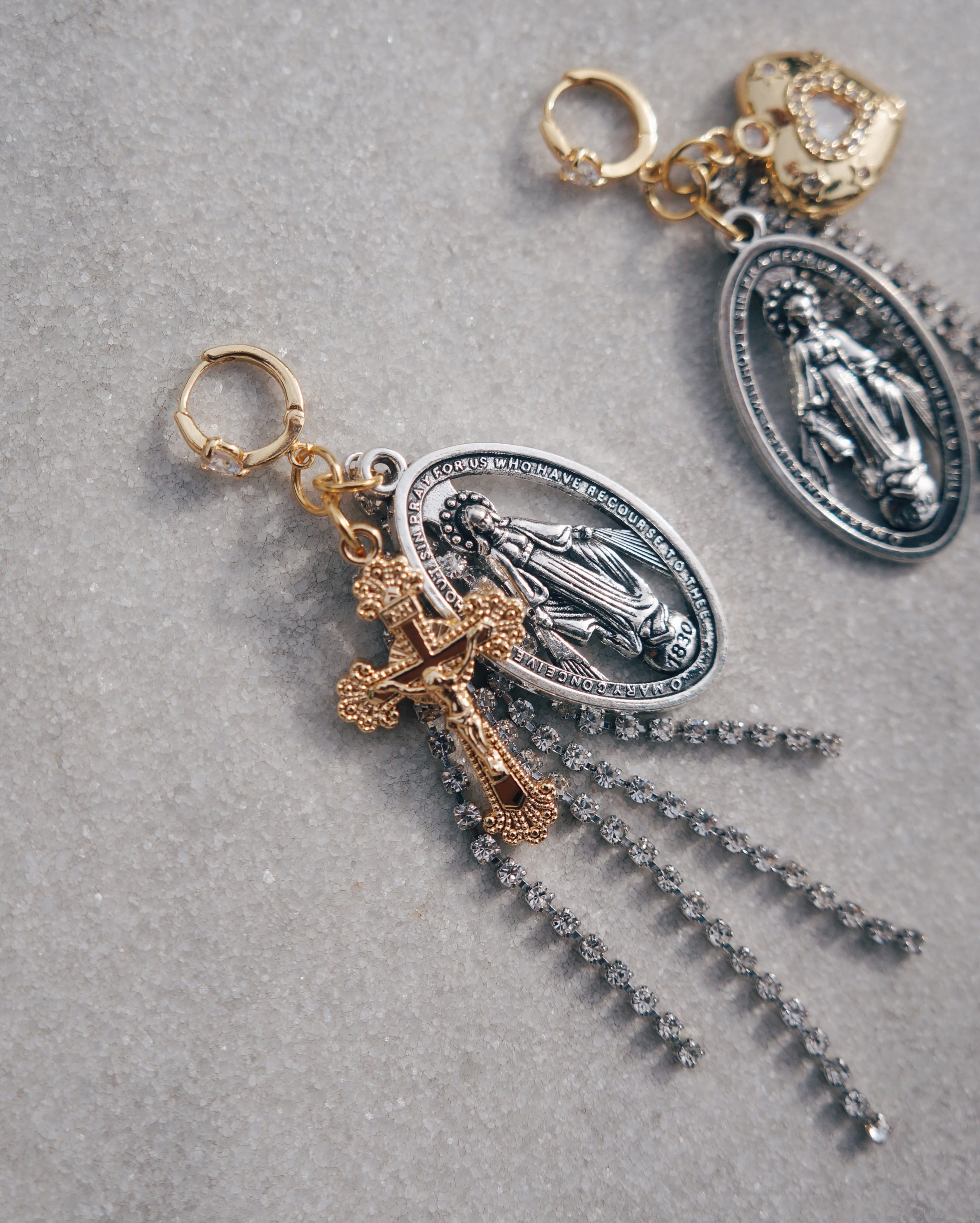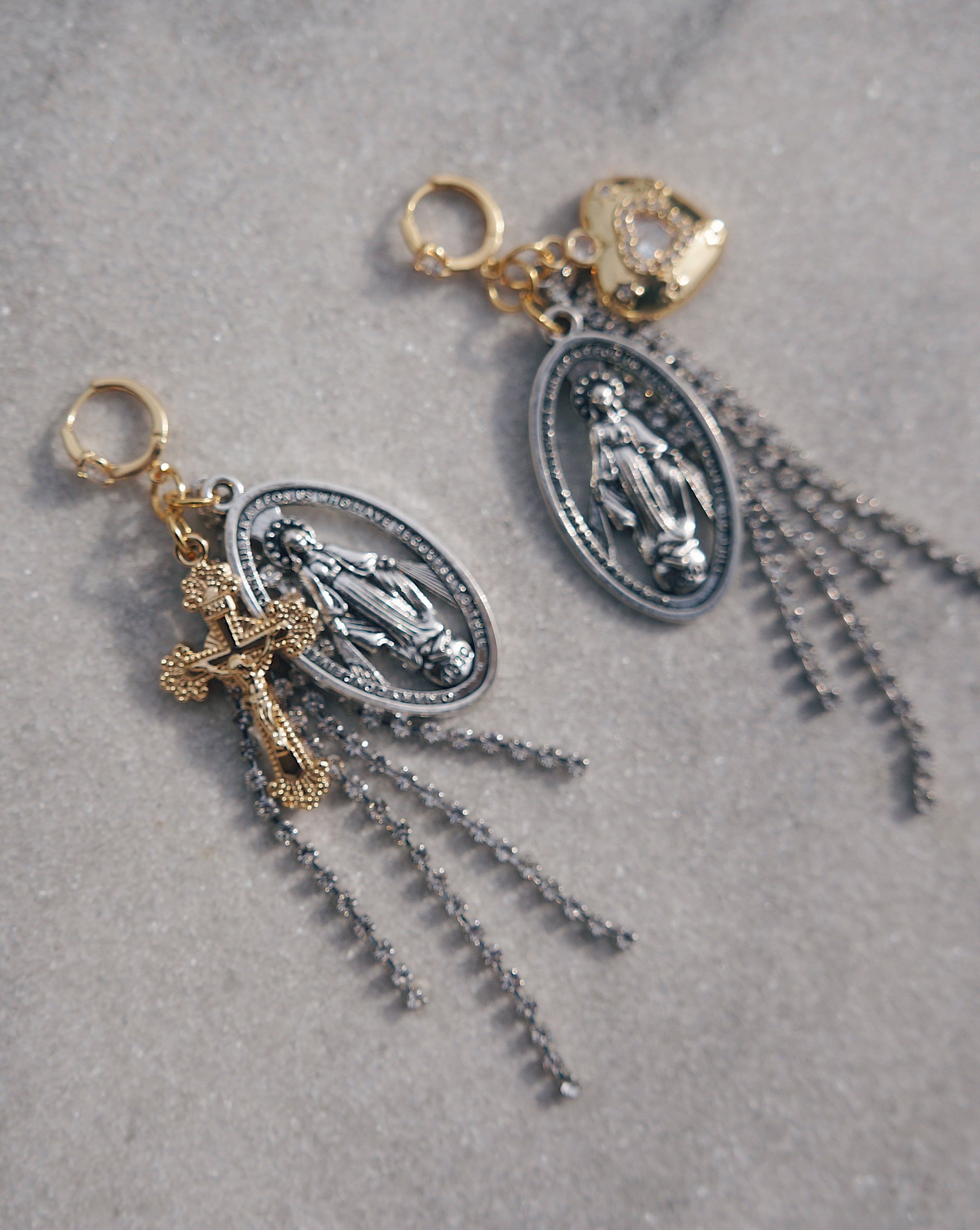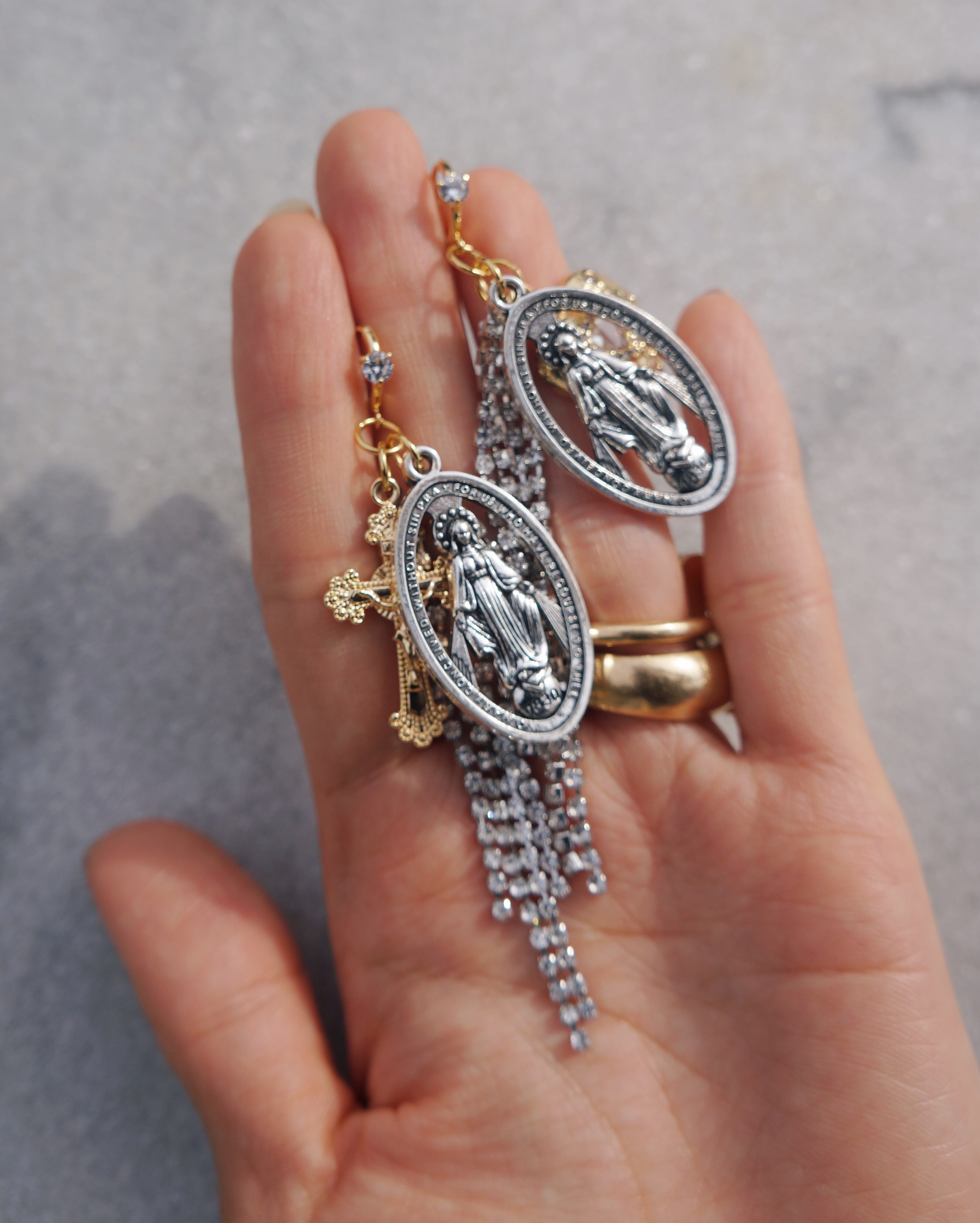 ジャラジャラ感が存在感のある、ゴールドとシルバーのミックスが可愛いピアスです。動くたびに揺れて印象が代わりとってもキュートです。